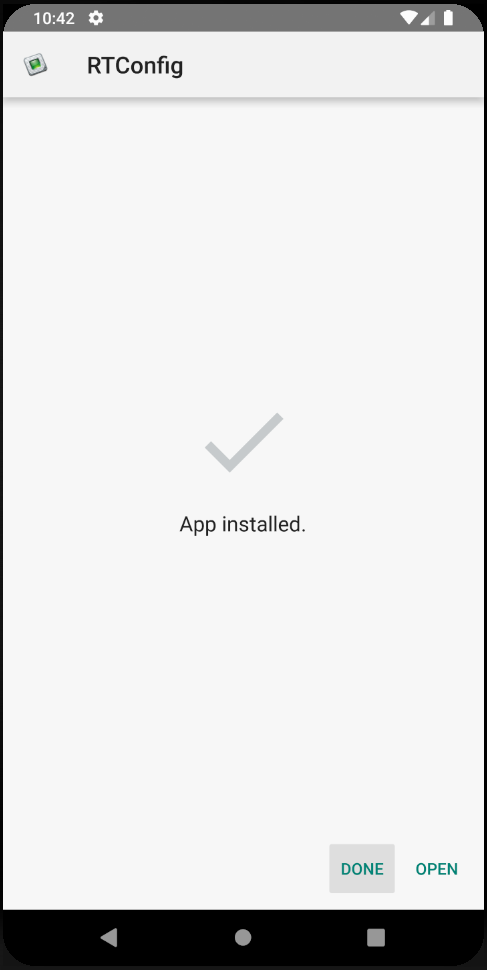 If you are installing onto a device with Android 9 or earlier locate RTConfig in your App Launcher screen and tap and hold on its icon to bring up the 'App info' menu shown below. Tap on 'App info'.